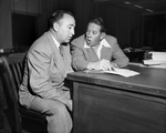 Collier Parris, left, and Bruce Layer, regional Golden Gloves directors here for the 16th annual state tournament, were among those who started the program in 1937. Parris is sports editor of the Abilene Reporter-News. Layer is sports announcer for Radio-TV Station KPRC in Houston. Published in Fort Worth Star-Telegram evening edition February 12, 1952.