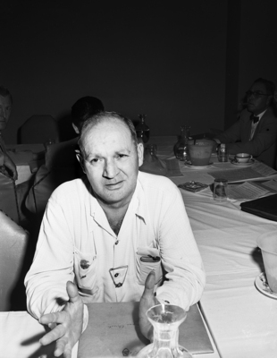 Shown is H. R. Horton from Corpus Christi, sitting at a dinning table . He was one of the many men who attended the Golden Gloves dinner.