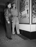 Movies prove popular pastimes for visiting ring men. Ray Thornton of Lubbock and Cotton Fowler from McCamey, Abilene boxers, shop for show to see after checking in at hotel. Published in Fort Worth Star-Telegram morning edition February 13, 1952.