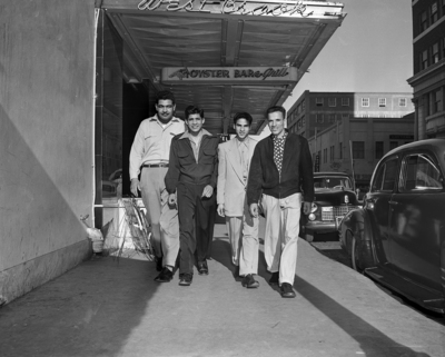 These El Paso boxers take turn about town. Left to right, Raul Flores, heavyweight; Mike Ramirez, lightweight; Pete Melendez, flyweight, and Mannie Villalobos, featherweight. Published in Fort Worth Star-Telegram morning edition February 13, 1952.