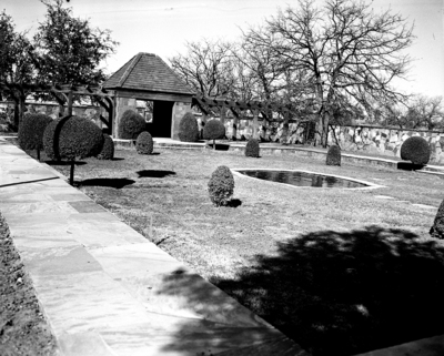 The formal garden in the rear of Arlington's Top O' Hill Terrace once felt the feet of the "the more liberal element" which visited the famous gambling place. New owners of the property plan to retain the garden as a part of the proposed Arlington Country Club.