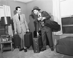 One of Stanolind Oil & Gas Company employees at Tulsa who this week-end started the journey to Fort Worth is Charles L. Ferguson, left, and James R. Cabler, show they are ready to grab their gear and go.