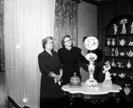 Mrs. Sidney Landman, right, shows the exhibit chairman, Mrs. Cary E. Rall, some of her Victorian "front parlor" bric-a-brac.
