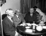 Discussing GOP matters in the Worth Hotel coffee shop before the opening of the party's state executive committee meeting in the hotel were Orville Bullington of Wichita Falls, right, state chairman; Mayor Leland S. Howard of Roscoe, left, and George C. Hopkins of Winnsboro. Howard favors Taft, Hopkins is for Eisenhower and Bullington isn't sided.
