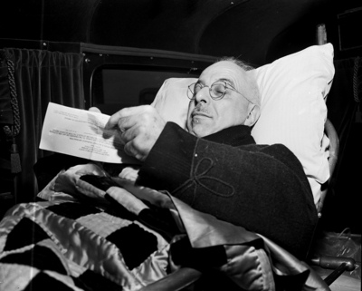 Howard F. Sutter, 4220 Parrish Road, marked his ballot in bond election at Haltom City from an ambulance cot at the polls. The civil engineer said he believed in doing his duty as a citizen and voter. Sutter, 62, is suffering from a heart ailment.