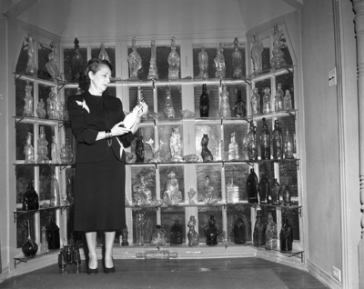 Mrs. Carroll Smith is shown with her vase collection. Published in Fort Worth Star-Telegram morning edition, April 2, 1952.