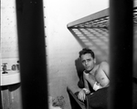 Robert Barber shown lying on jail bunk. Barber is charged with murder of Detective Henry Cleveland and wounder Detective A. L. Armstrong when they served a warrant for his arrest at his home.
