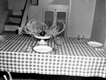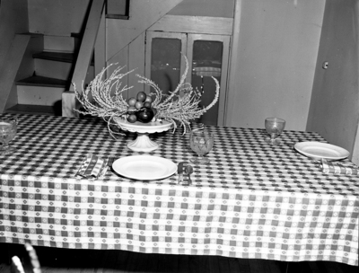 This American Colonial supper table, entered for analysis in the Woman's Club Garden Department table show clinic, would have had a blue ribbon grade, said Mrs. Victor Tinsley, nationally accredited flower show judge, if the modern line arrangement had been one of old fashioned flowers, or a colonial fruit bowl.