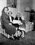 Linda Anna Els, daughter of Mr. and Mrs. Jimmy Els of 3704 Chicksaw, points out that February 22 is a special day, her fourth birthday. Three other members of the family also were born on Washington's birthday. Pictured left to right are Mrs. W. J. Els, 42, of 3609 Hemphill; Mrs. C. Y. Rone, 66, of 1908 Hurley and Mrs. J. G. Els, 71, of Dallas. Three woman and one little girl.