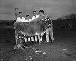 Left to right, O. M. Nessler Junior of Kennedale, Charles Weatherby of Benbrook; Jerry Hay of Smithfield and J. R. Simons. Jimmy Simons with his dog.