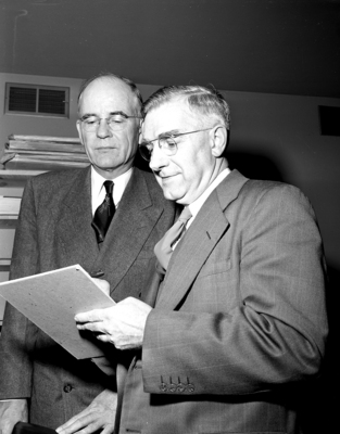 Making plans here for an organizational meeting of a new national interfaith group are Willard L. Russell of Houston, left, and John Metzler of Chicago, national director, Christian Rural Overseas Program.