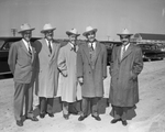 Mexican government officials and American Airlines representatives from Mexico City toured the Greater Fort Worth International Airport here Tuesday. They were, left to right, Francis Alstock, representative of the office of President Miguel Aleman; Erby E. Swift, American Airlines attorney in the Republic of Mexico; George C. Van Nostrand, vice president and general manager of American Airlines in the republic; Antonio J. Bermudez, director of Petroleos Mexicanos, and Manuel Rodriguez Aguilar, chief geologist for the Mexican government.
