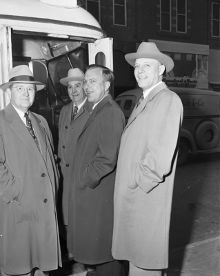 A special bus toured West Side schools Tuesday morning in observance of Texas Public School Week. Shown boarding the vehicle are, left to right, Elden Busby, assistant superintendent of schools; Howard P. Jones, general manager of Swift & Company; William Monnig III, and Perry Davis, vice president of Texas Electric Service Company.