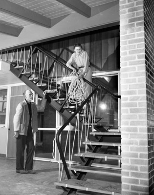 Fort Worth. City of. Residences. Mr. and Mrs. E. A. Ingram shown sat the iron staircase in one of the apartments at Harley and Siguinet.