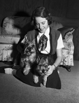 In April Show - Ann Plankey, daughter of Mr. and Mrs. William V. Plankey, 1910 Rockridge Ter., exhibits two of their miniature schnauzers entered in the all-breed show of the Fort Worth Kennel Club, April 20. The dogs are Champion Willrose Smokey Joe, left, and Willrose Frederika, who will be six months old the day before the show and eligible to enter.