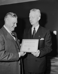 Safety Record Cited - J. R. Neil, left, general manager of Container Corporation of America here, receives an honor certificate for the plant's safety record from O. G. Carlso of the Fort Worth Safety Council.