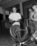 Amid the Ruins - Jimmy Richards, 12, surveys damage to his bicycle in fire which destroyed home at 1021 S. Henderson late Saturday. Mrs. Catherine Donley died in the blaze.