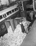 Chicken Fricassee - Robert Norris of Comanche, Farmers Produce Company truck driver, ran into a foul bit of luck in Fort Worth Saturday when his load of thousands of chickens slid from truck on the incline of Jennings at Lancaster and littered the street with fryers. None ran away, however - the fowls were frozen.