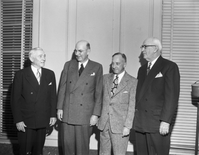 Participants in the Greater Fort Worth Hospital Fund information session at Hotel Texas Monday night were, left to right, Will K Stripling president; J. B. Thomas, vice president; Web Maddox, vice president and chairman of the needs and plans committee, and J. Lee Johnson Junior, member of the executive committee and general chaiman of the campaign to raise $3,965,000 to ease the pressure on Fort Worth's hospital facilities.
