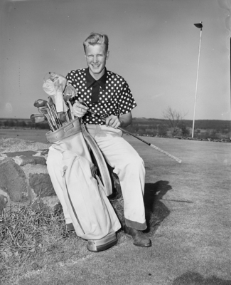 Jack Gers of Oklahoma City's Capitol Hill High School strokes one of the clubs that won him medal honors in high school division of SW Recreation Golf Meet at Meadowbrook. Published in Fort Worth Star-Telegram morning edition March 18, 1950.