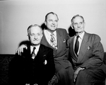 Three men unidentified. They are wearing suits, and standing together. Their arms are on each other's shoulders.