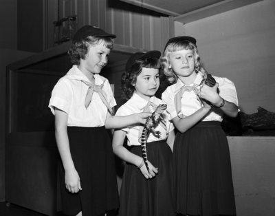 Not even afraid of toads and alligators, and as proof, here's Sara Deering, Brenda Stinson and Kay Caldwell, from left to right, who were among the 200 Camp Fire Girls who visited the Fort Worth Children's Museum.