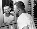 Don Zimmer, who batted.273 with Elmira last year, shaves and allows a closeup of his pleasant features. Published in Fort Worth Star-Telegram morning edition, March 23, 1952.