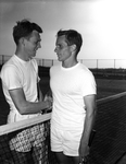 Jack Coleman, left, of ACC compliments Texas Christian University's Charles Ludwing on latter's victory in No. 1 singles in dual meet at Texas Christian University. Published in Fort Worth Star-Telegram morning edition March 21, 1952.