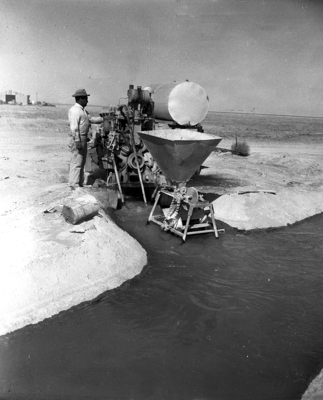 Six hundred pumps similar to this one on the J. B. Kirklin farm near Pecos will put water on 100,000 acres in the area this year. Published in Fort Worth Star-Telegram evening edition March 21, 1952.