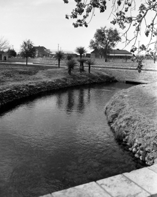 Water flows from the springs at Balmorhea into this canal and goes into a reservoir where it is stored for irrigation. Published in Fort Worth Star-Telegram evening edition March 21, 1952.