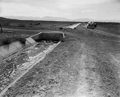 Balmorhea area farmers get irrigation water that runs into this canal into a storage reservoir. The canal was built by the Department of the Interior and handles water from Balmorhea Springs and Phantom Lake in the Davis Mountains. Published in Fort Worth Star-Telegram evening edition March 21, 1952.