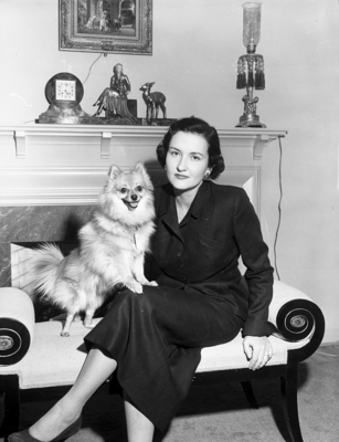 Miss Gloria Todd prefers a toy dog for her canine companion and Jo-To fills her requirements and is a favorite with her whole family. Published in Fort Worth Star-Telegram morning edition April 20, 1952.