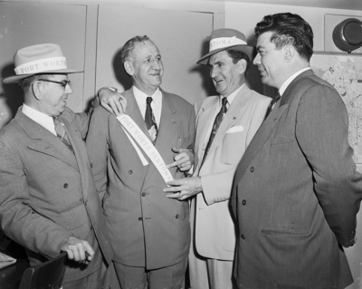 These four members will be in the Fort Worth Sertoma Club delegation scheduled to leave by chartered bus for New Orleans and a District 6 Sertoa convention. They are, left to right, S. C. Alley, delegate; T. V. Weaver, delegate; Joe J. Johnson, club president, and Leonard Strealy, trip chairman. Published in Fort Worth Star-Telegram morning edition, March 27, 1952.