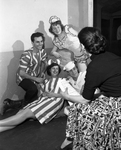 Four cast members of "Hipsy Boo", slated soon for Carswell Air Force Base, listen not in the least seriously to Director Persis Hopkins' rendition of a composition of the same name as the show. They are, left to right, Norris Dominque, Corp. Beverly Thomas, Corp. Joyce Miner and Sgt. Wayne Kuhns. Published in Fort Worth Star-Telegram morning edition, March 30, 1952.
