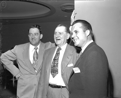 A father and son oil team from Abilene, W. D. Jr., left, and W. D. Brookover Sr., center, with another operator from the same West Central Texas city, Morgan Hubbard. They were among 400 oil men here for the convention. Published in Fort Worth Star-Telegram morning edition, March 30, 1952.