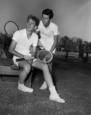 Arlington Heights' Gary Cole (left) and Bill Davis are picked to win the boys' doubles title in the city net finals. Published in Fort Worth Star-Telegram morning edition March 30, 1952.