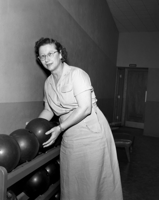 With one week to go in women's state bowling tournament at San Antonio, Fort Worth's Louise Dodd leads Class B singles. She shot 558 last week-end. Published in Fort Worth Star-Telegram evening edition April 1, 1952.