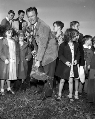 Man surrounded by children breaks ground for Lena Pope Home's Babyland.