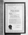 A copy of the honorary life membership certificate presented to Mr. Carter by the American Association of Airport Executives.
