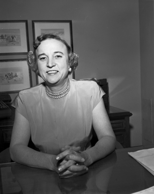 Mrs. Bess Brants of Rowan Oil Company and Rowan Drilling Company, Inc., has been in the industry for 25 years and is announcing her retirement. Brants, secretary and treasurer of the two companies, had been with the two firms since their beginnings and has decided she is no longer a "career woman". Published in Fort Worth Star-Telegram evening edition April 3, 1952.
