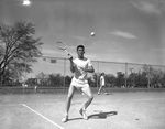 North Side's Billy Livesay gets set to return show in match with Paul Jarnagin of Poly. He went on the win in first engagement of high school net tournament. Published in Fort Worth Star-Telegram morning edition April 10, 1952.