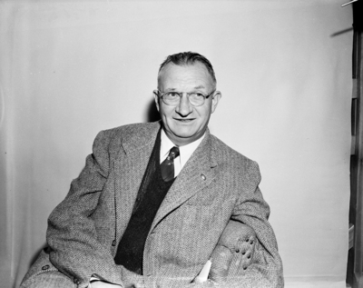 Francis J. Powers, executive secretary for the annual all-star East-West football game, visited Fort Worth. Published in Fort Worth Star-Telegram evening edition April 10, 1952.