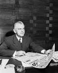 "Household appliances stores are paying now for the selling boom of July and August 1950 and early 1951.", D. A. Packard of Detroit, a top sales executive in the business, said here. Packard is seated at a table with a newspaper. Published in Fort Worth Star-Telegram morning edition April 19, 1952.