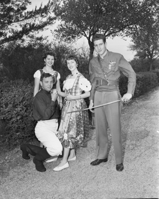 Council of Community Service will be hosts to the North Side High School cast of "The Bohemian Girl" at a special performance of the opera at Hotel Texas. Featured in the program are, left to right, Barbara Ralls, B. B. Stevens, Jimmie May Pace, and Charles Wooten. Published in Fort Worth Star-Telegram morning edition April 20, 1952.