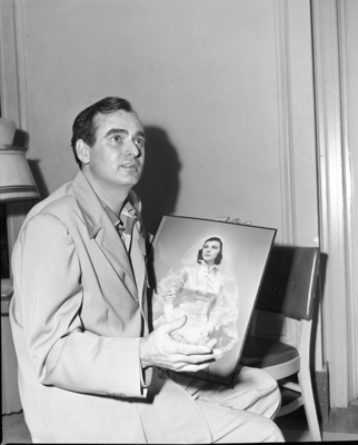 The photograph shows Fonville Winans who got interested in photography about 20 years ago when a camera in a store window caught his eye. Mr. Winans is shown sitting with a framed photograph of a lady in white gown in his hand. Published in Fort Worth Star-Telegram morning edition April 22, 1952.