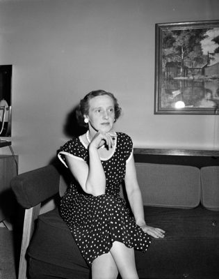 Portrait of Mrs. John Hammond who has logged more than 2000 hours since she began flying in 1931. She is attending a three-day meeting of the Texas chapter of the 99s.