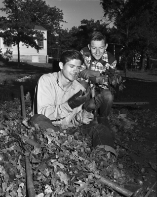 Ronald Swafford, left, and Floyd Robertson ranked leaves, dug up poison ivy and hauled off trash not only to participate in the Fort Worth cleanup, campaign but as part of a project to earn money for Handley High School, where they are in the 10th grade.