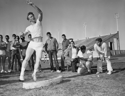 McLean's Douglas Crow tossed the shot 51 feet and 4.5 inches to win the eighth-grade event and set a new mark. Crow also won in record performances. Published in Fort Worth Star-Telegram morning edition April 26, 1952.