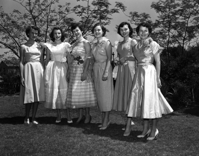 Left to right, Linda Hampton, Lo Barnes, Barbara Krog, Sandra Hampton, Carol Rechenthin and Carolyn Coleman. Published in Fort Worth Star-Telegram morning edition May 18, 1952.