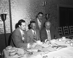 Texas Game and Fish officials confer here with Fort Worth Anglers Club officers over expanding the state fish hatchery at Eagle Mountain. Left to right: Felix Ankele, president of anglers' club; Joe Marks, commission engineer, and Howard D. Dodgen, executive secretary of commission. Standing, Edwin Whittenberg, vice president of anglers' club.